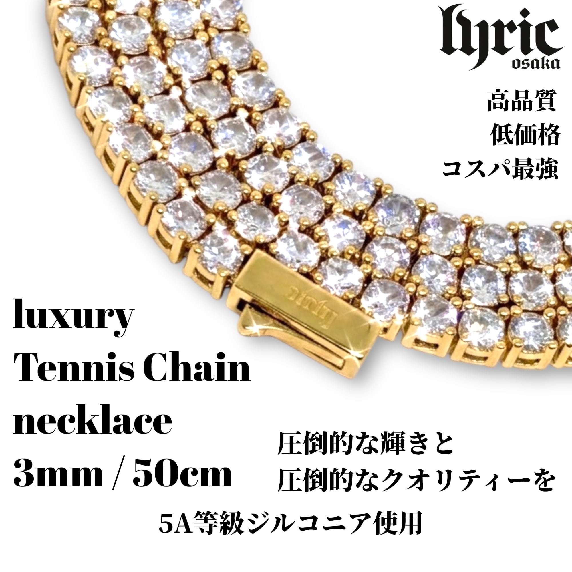 3mm 50cm luxury tennis necklace gold