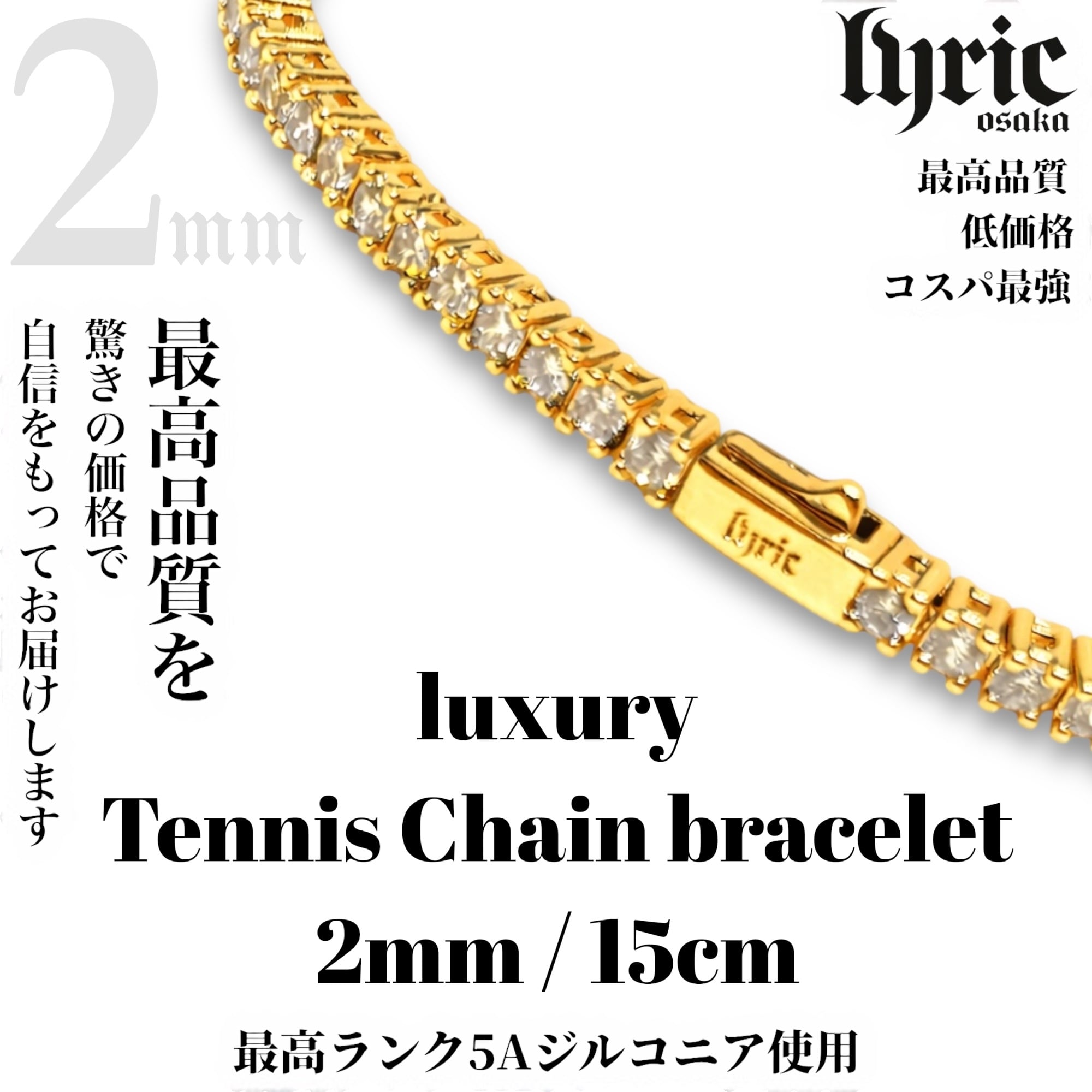 2mm 15cm luxury tennis bracelet gold