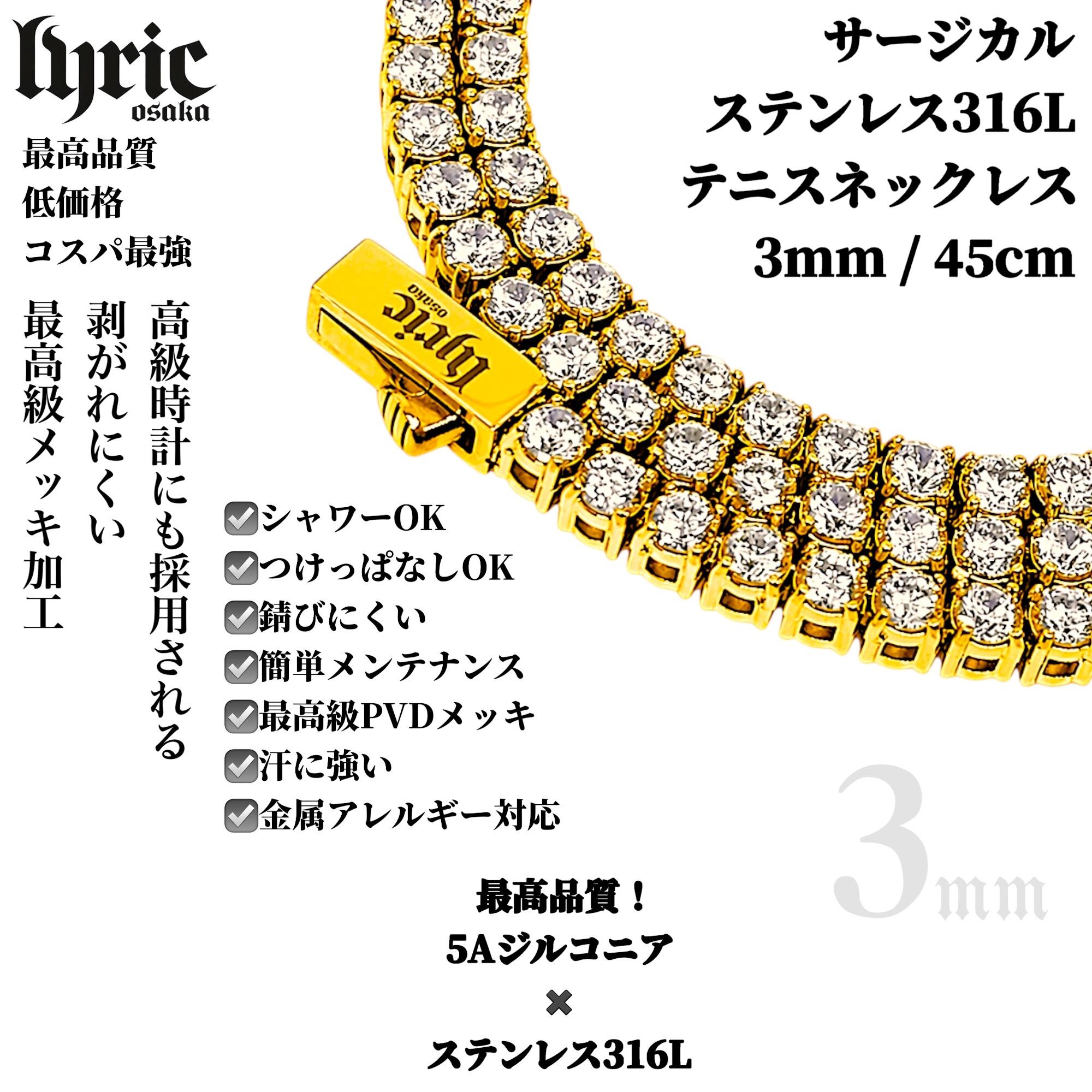【最高級】stainless316L 3mm 40cm luxury tennis necklace gold